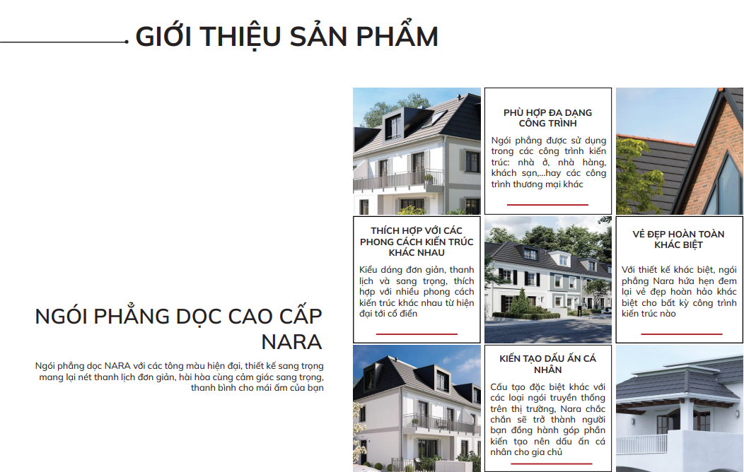 Đặc điểm: mái dốc nhẹ, độ vảy rộng, khe mái lớn, tạo cảm giác thanh thoát và hiện đại.